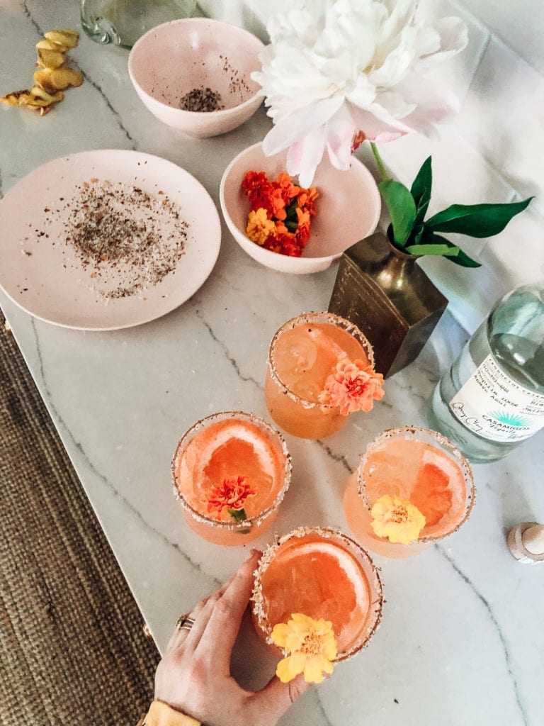 Last week I shared details from a simple summer dinner party we threw recently, and today I’m sharing the first of 3 recipes from the occasion. Palomas are my favorite summer cocktail and this recipe from Floral Libations is a lovely twist on the salty, tart classic. Cassie Winslow’s book really brings the fun (and beauty!) into your everyday beverages.