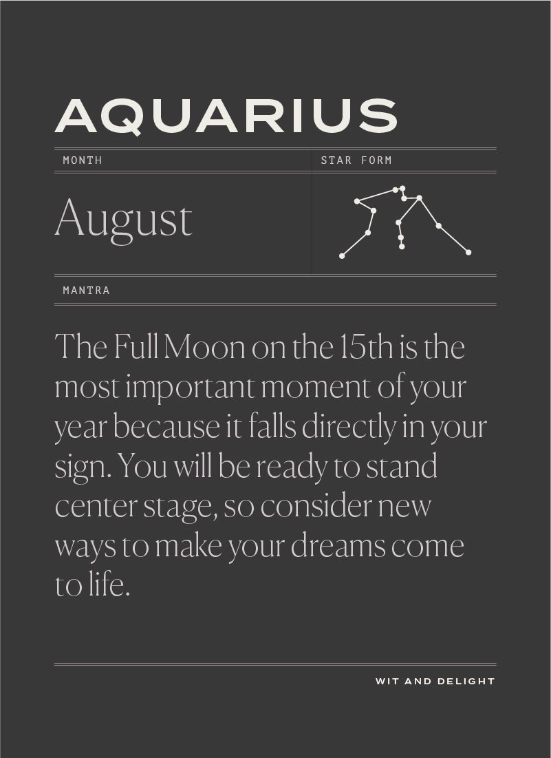 Important partnerships are on your mind now, Aquarius, either in love or business. Find ways to grow closer and forge stronger connections. The Full Moon on the 15th is the most important moment of your year because it falls directly in your sign. You will be ready to stand center stage, so consider new ways to make your dreams come to life. The world will be listening to you now, so know that your actions carry special weight. The month ends on August 30th with a New Moon in your intimacy sector, pulling you back toward your emotional needs. Grab those who you love closely and celebrate your union.
