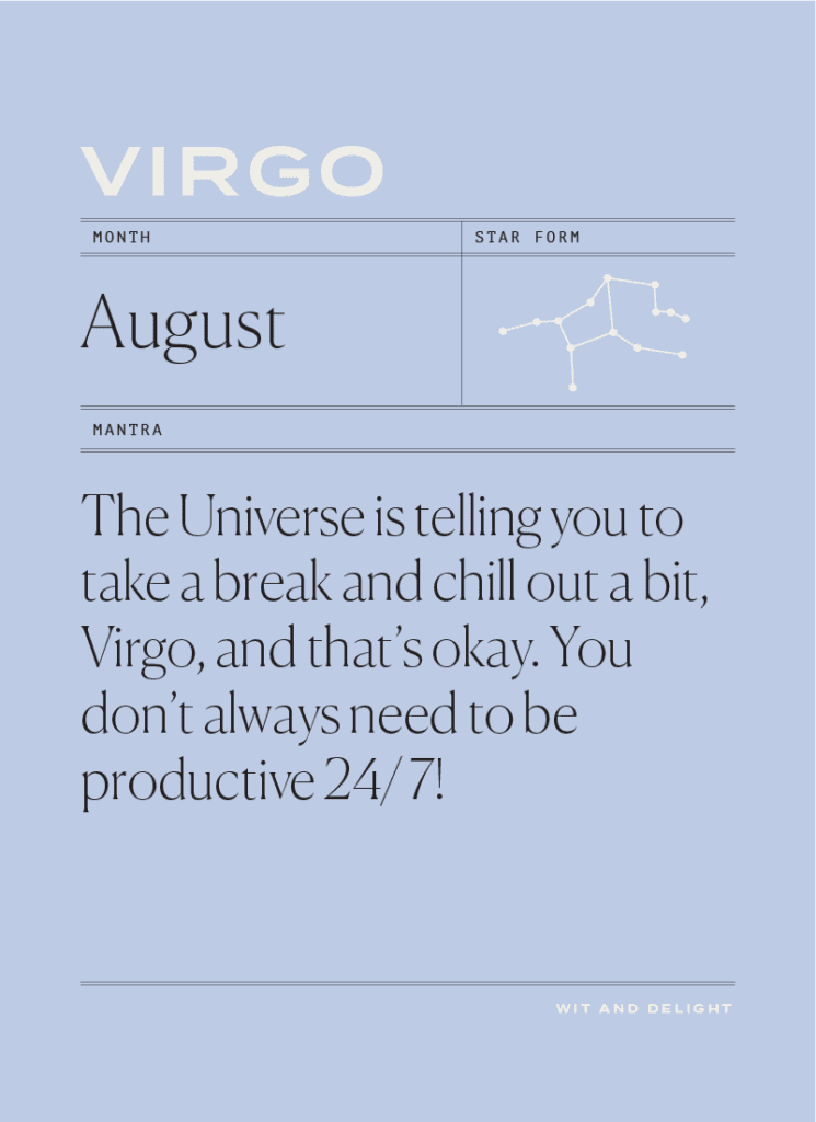 The powerful lion has arrived and you certainly know how to throw a party! The beginning of August will set the tone for your entire year to come, so make sure that you are going after all of the items on your list of hopes and dreams. Begin the steps that’ll set all of it into motion. August 15th shifts your focus from you to your important one and only (in business or in love), and you may be noticing that you are ready to make an important decision in relation to that partnership. This could be about bringing the two of you closer or perhaps walking away. Do not be afraid—you are always as bright as the Sun. The New Moon on the 30th has you ready to add jewels to your crown, so consider ways you can bring in more money. You may see some steady opportunities roll in.